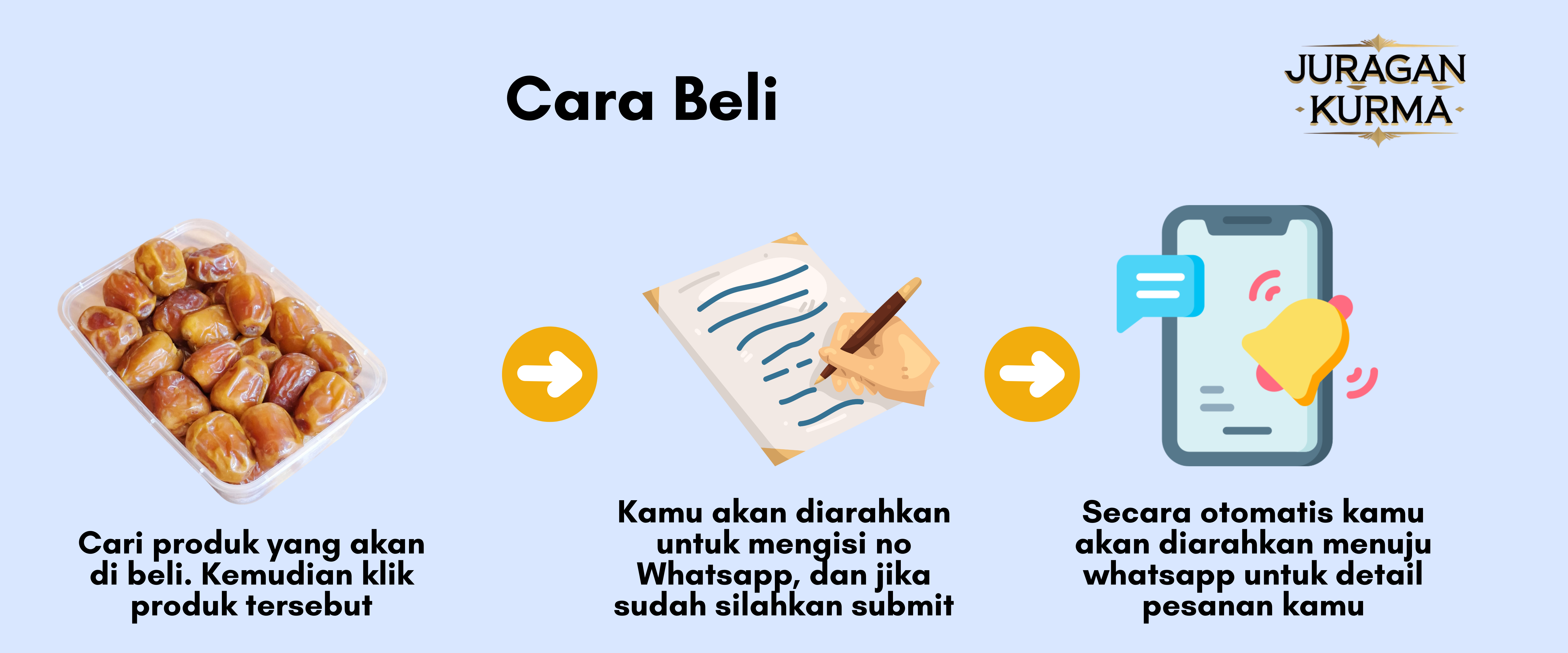 Juragan Kurma adalah pemasok dan distributor tepercaya yang mengkhususkan diri dalam kurma berkualitas premium yang diimpor dari Timur Tengah. Berkomitmen pada kesegaran dan keaslian, Juragan Kurma menawarkan beragam kurma — mulai dari Ajwa, Medjool, dan Kurma Muda hingga Sukari dan Khalas — memastikan pelanggan menikmati rasa dan manfaat nutrisi terbaik. Dengan fokus pada standar halal, kemasan yang prima, dan harga yang terjangkau, Juragan Kurma telah menjadi pilihan utama bagi individu, pengecer, dan reseller di seluruh Indonesia.